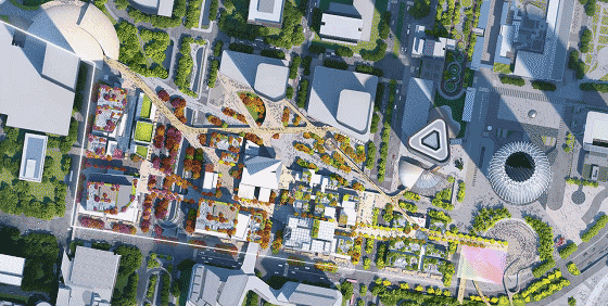 屋顶不雅景平台、露天剧场、下沉式天井,小区规划,